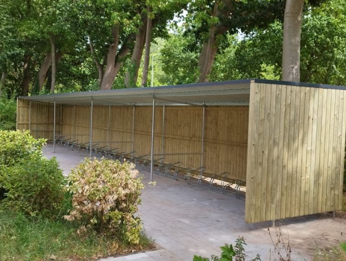 Fietsoverkapping en Afsluibare berging bij Enschedese Schoolvereniging (ESV)