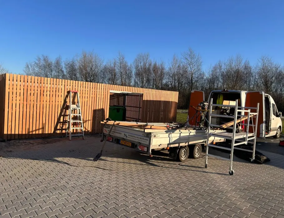 De constructie wordt stevig verankerd in beton of straatwerk en netjes afgewerkt, zodat de fundering uit het zicht blijft.