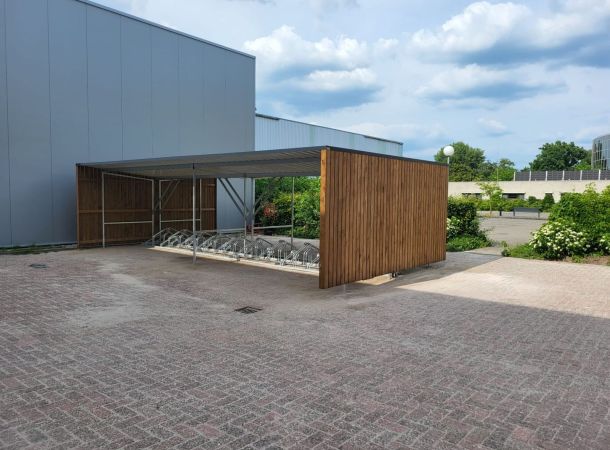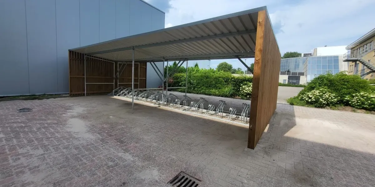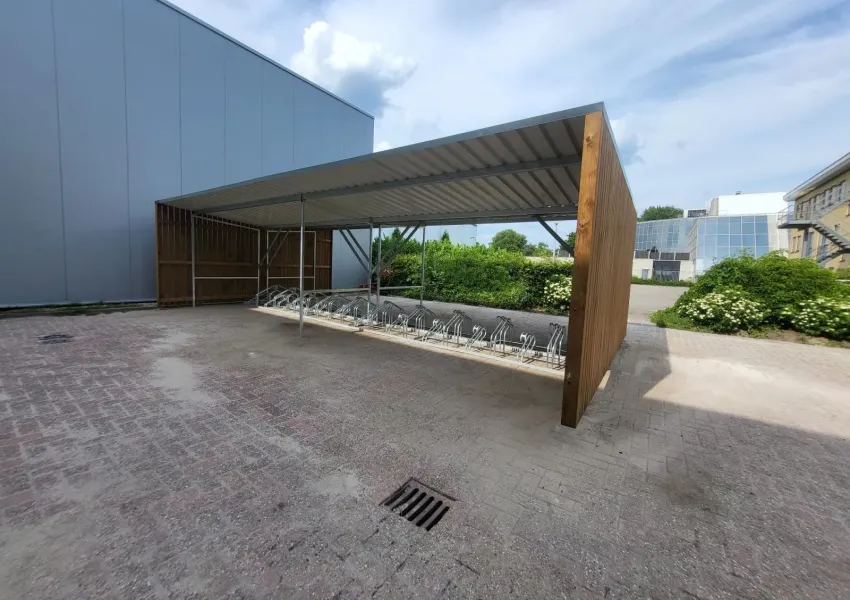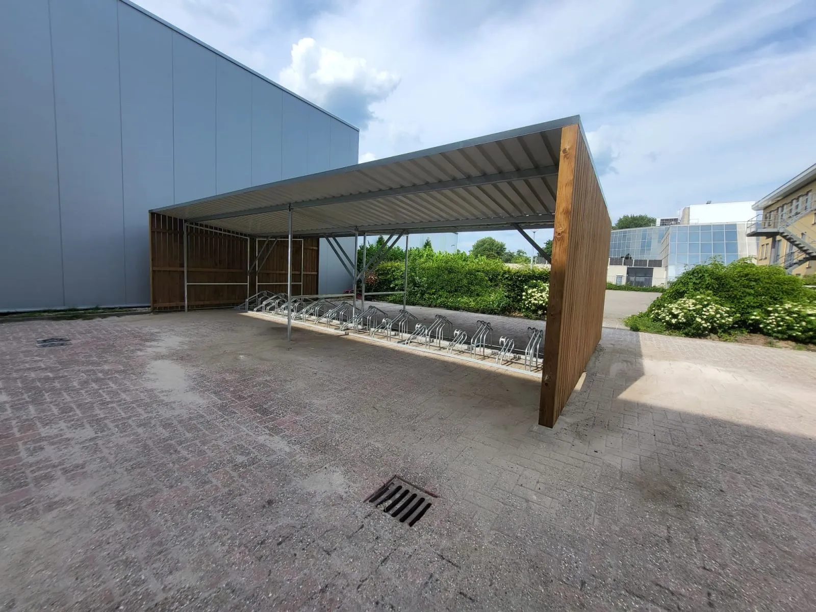 Met onze meegeleverde fietsrekken type hoog/ laag kunnen er 40 fietsen in gestald worden.