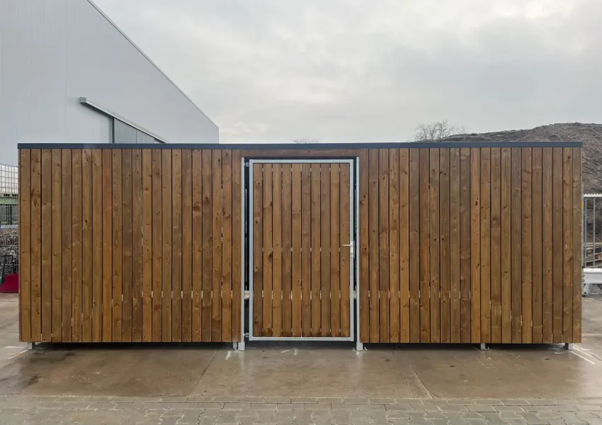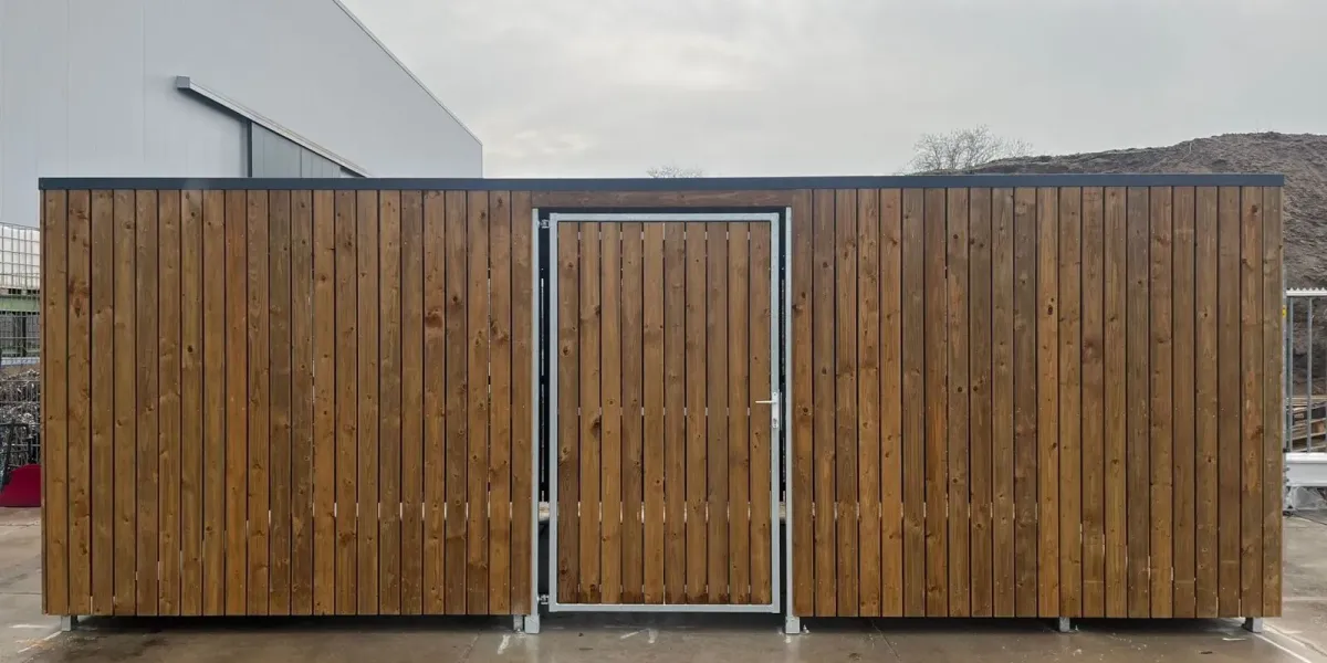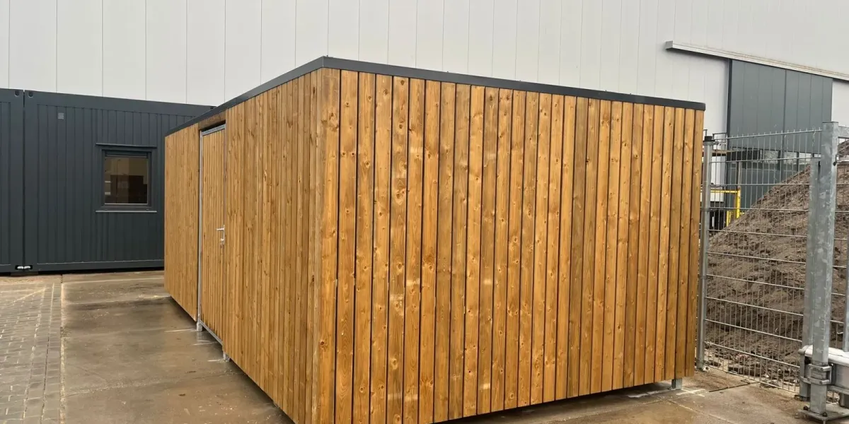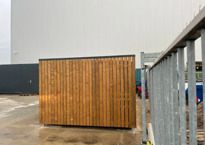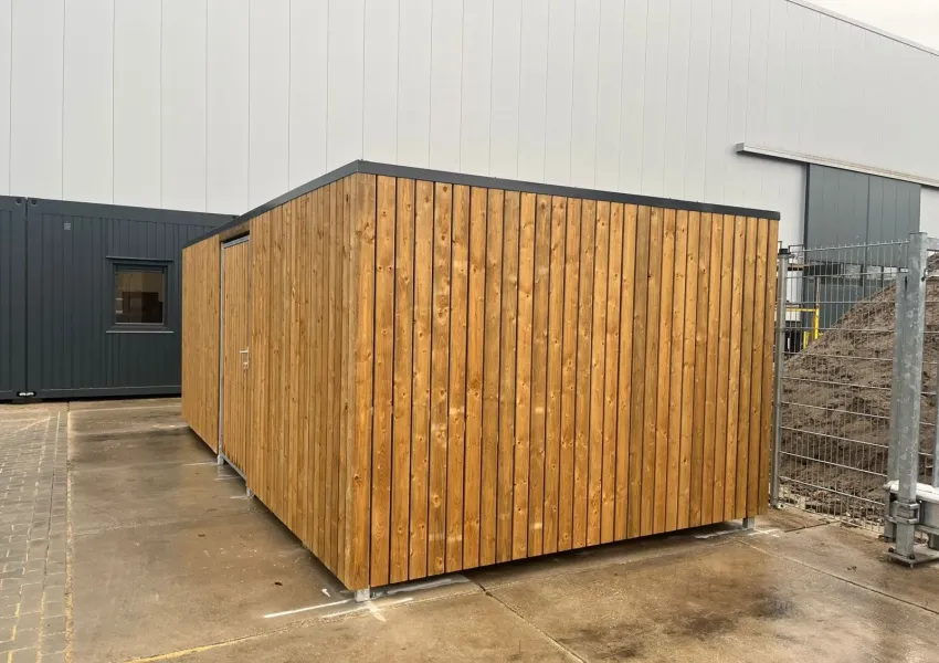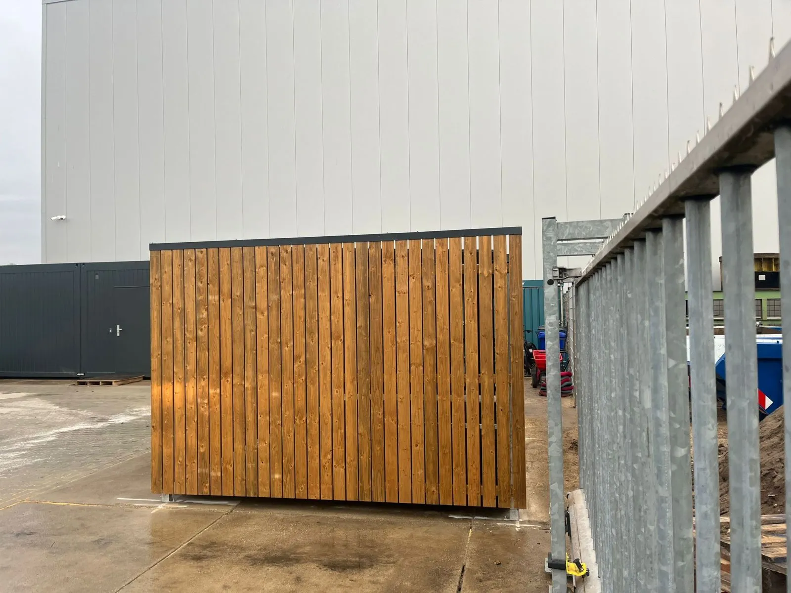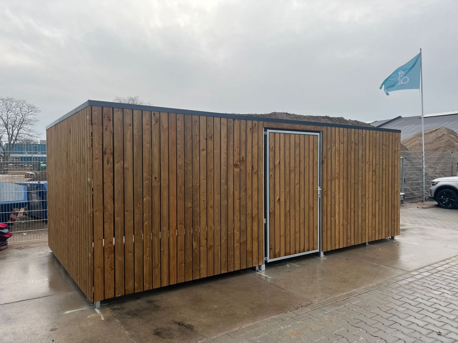 In opdracht van De Bruin Process Equipment hebben wij in Zutphen een afsluitbare fietsenberging geplaatst van hoogwaardige kwaliteit. De berging heeft een linksdraaiende deur en een buitenmaat van 610 x 318 x 226 cm.