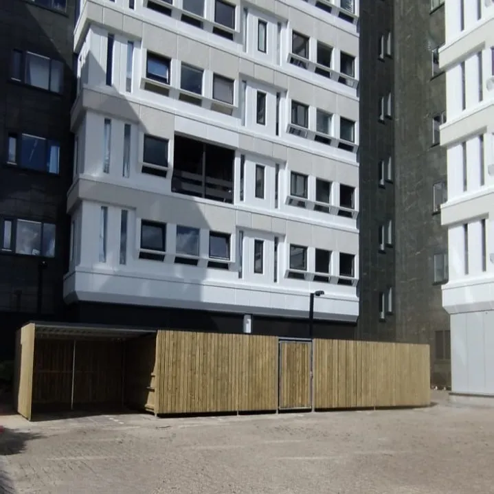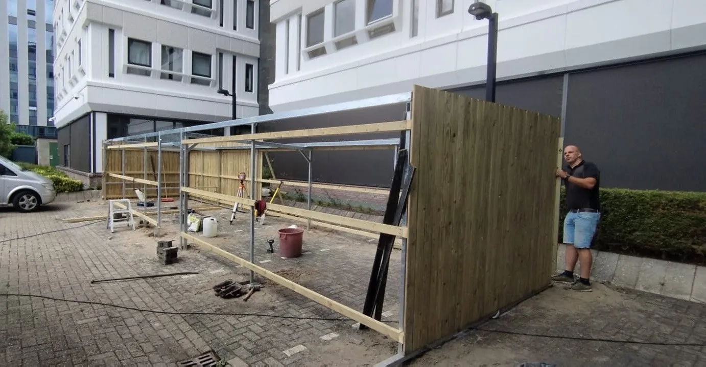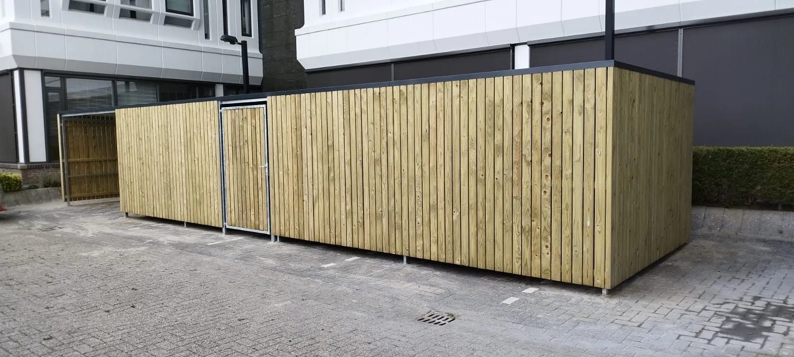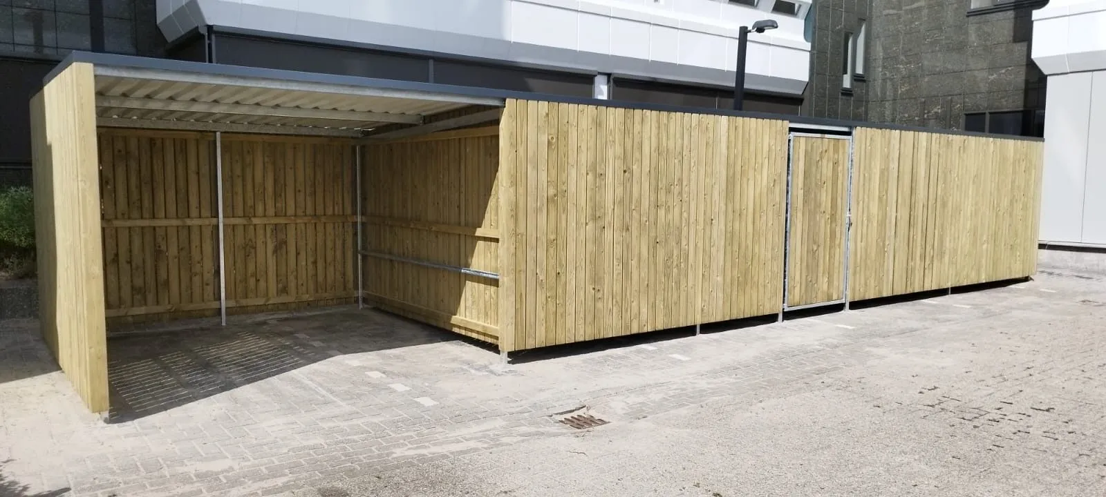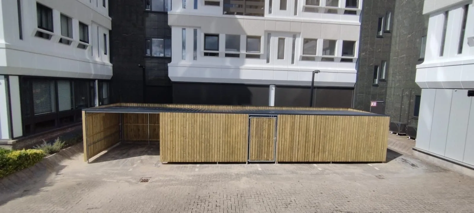 In opdracht van Harn Invest Projects B.V. plaatsten wij in Leeuwarden een afsluitbare fietsenberging met overkapping. Deze functionele en duurzame oplossing biedt beschutting en veilige opslag voor fietsen.