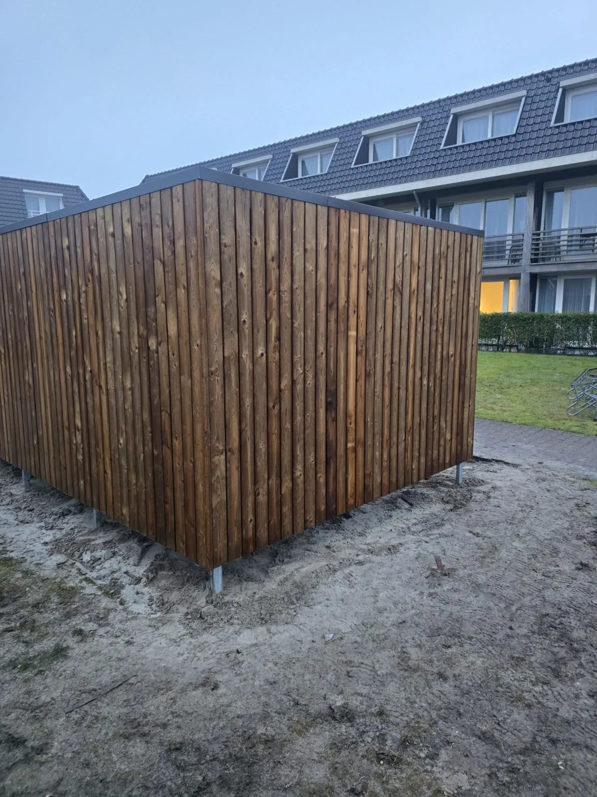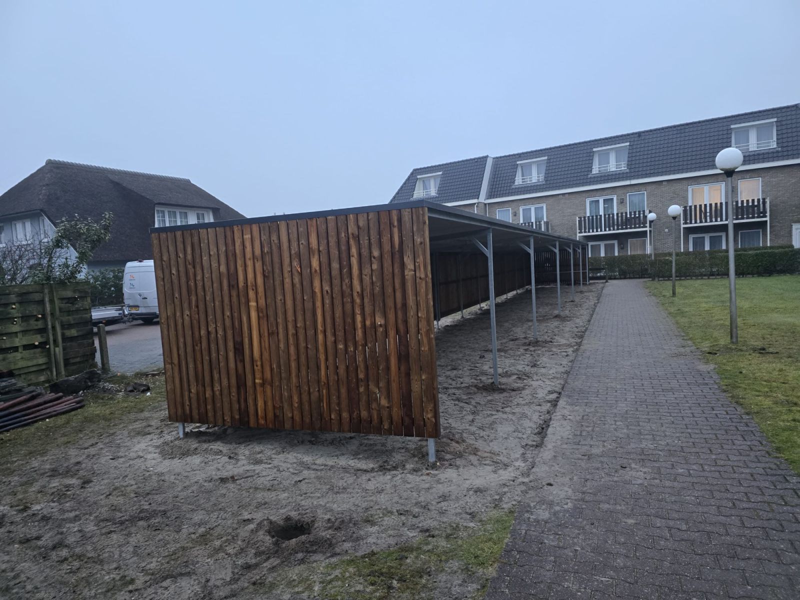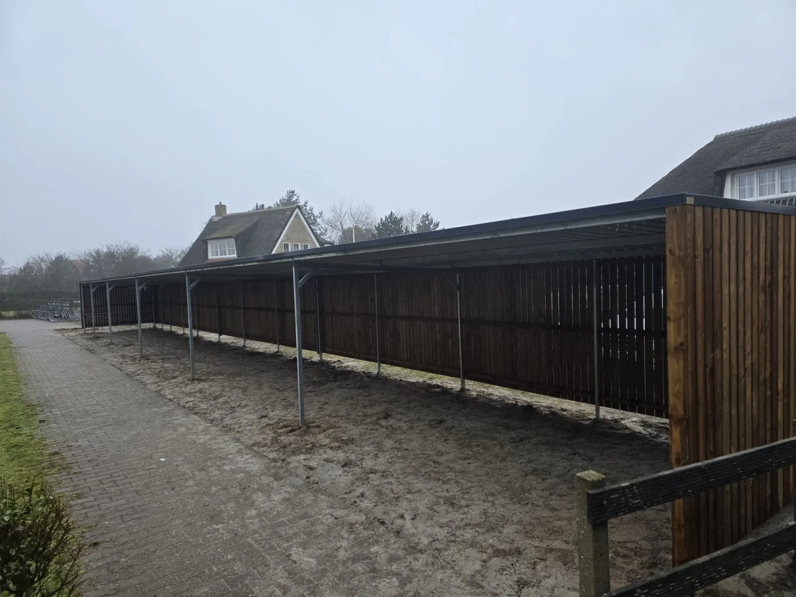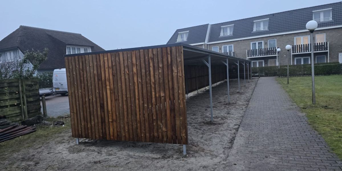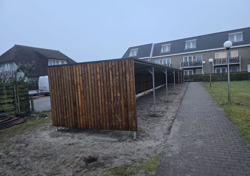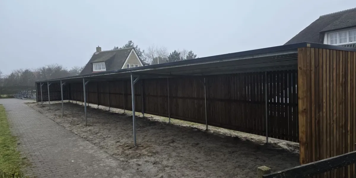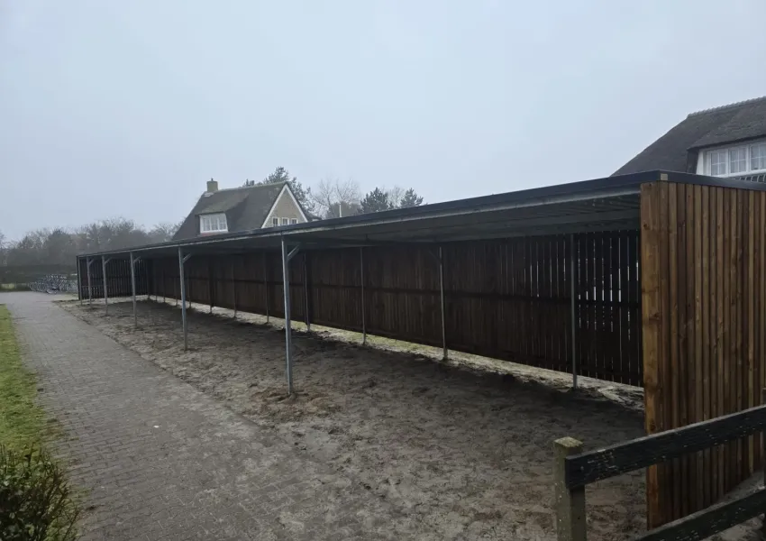 Bij het Hotel Nes Ameland B.V. hebben wij een fietsoverkapping met open voorkant mogen plaatsten.