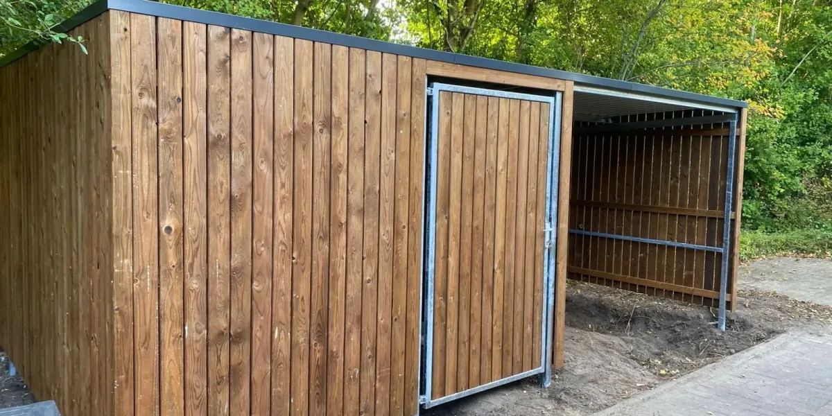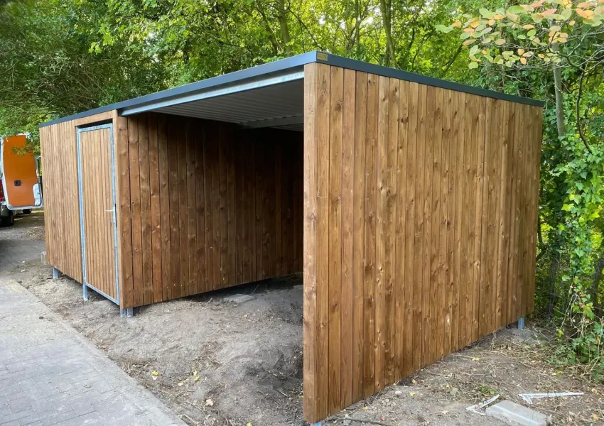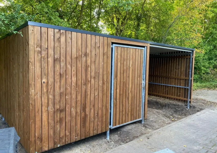 In Delft hebben we bij B&B Eemswolde in één dag een fietsenstalling met afsluitbare berging geplaatst. Een praktische en duurzame oplossing voor het veilig stallen van fietsen en het opbergen van materialen.