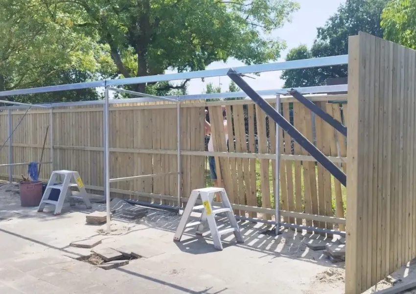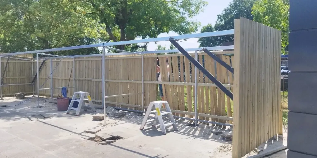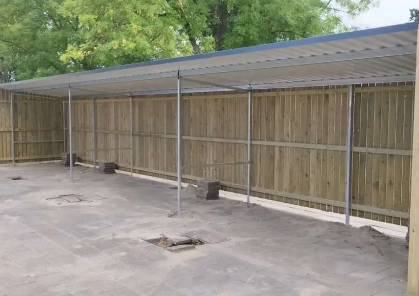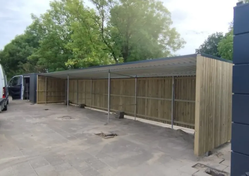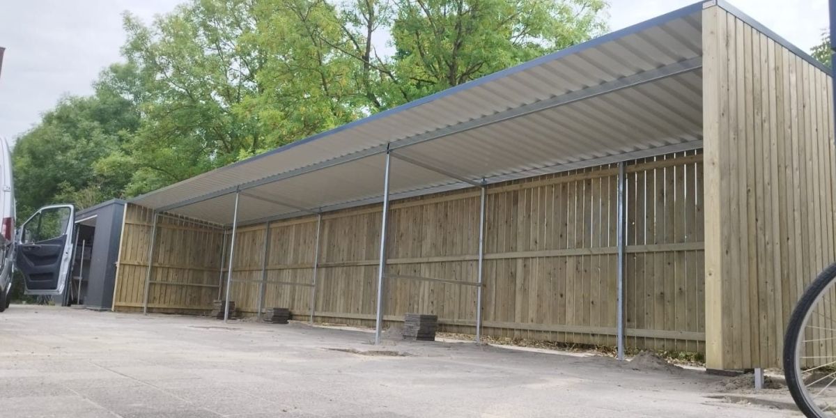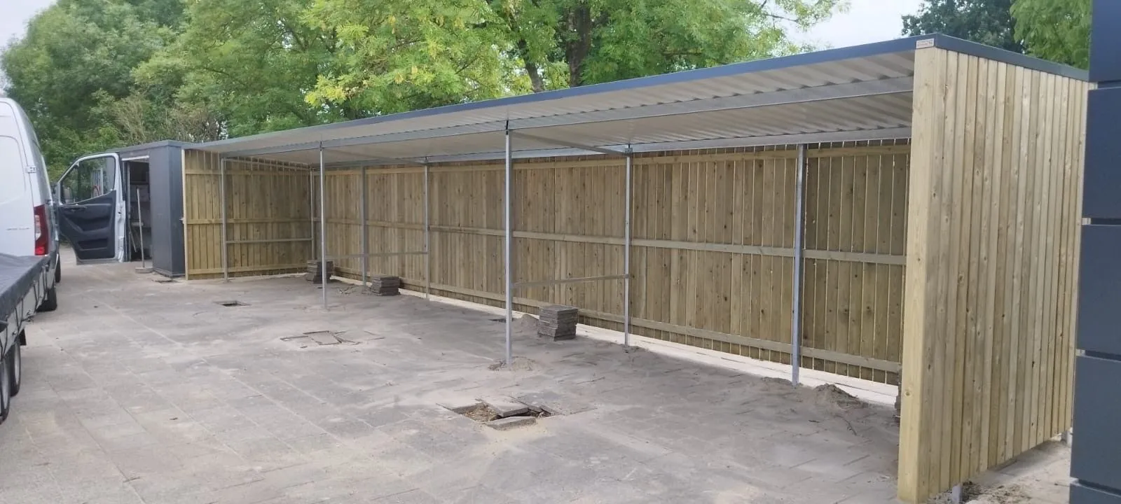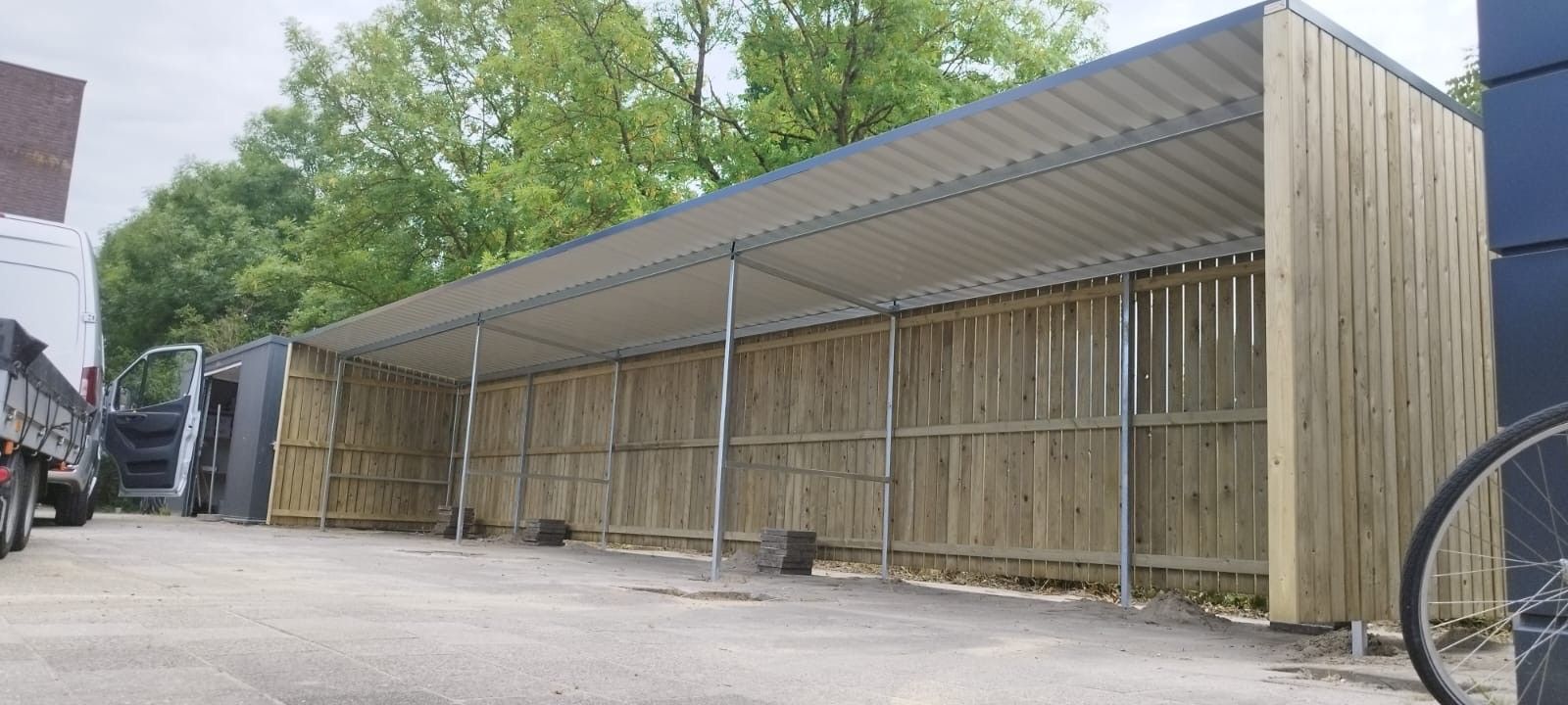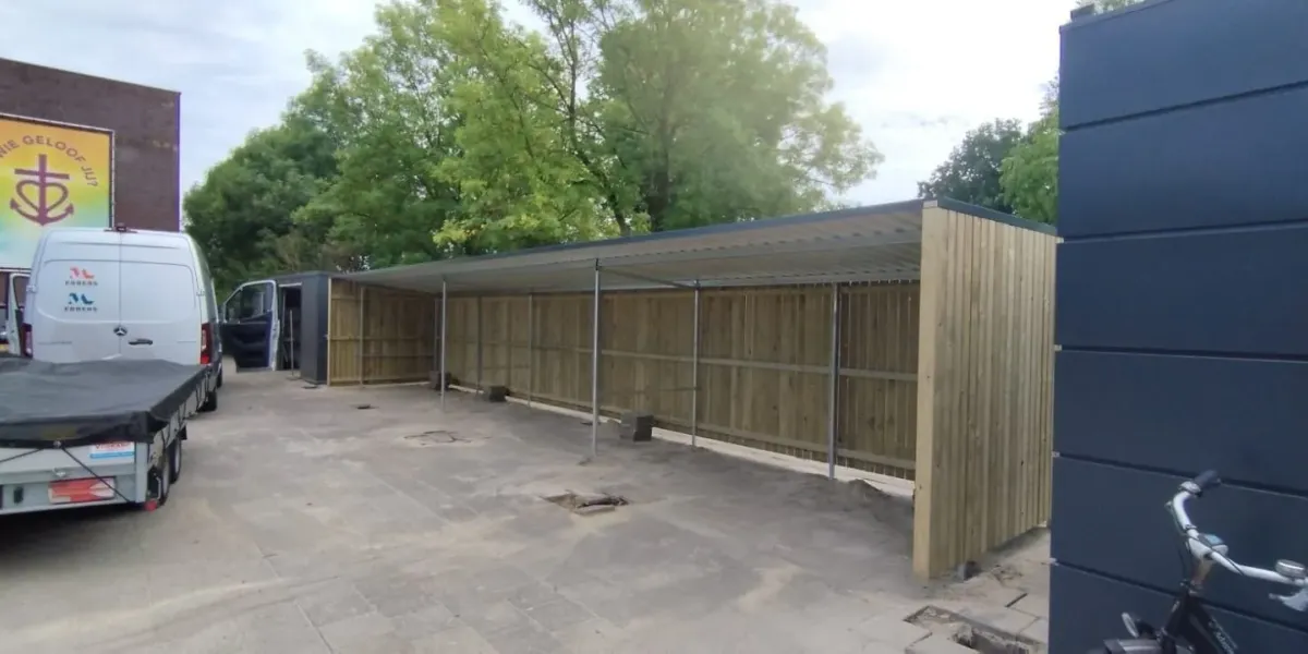 Deze overkapping biedt ruimte voor meerdere fietsen.