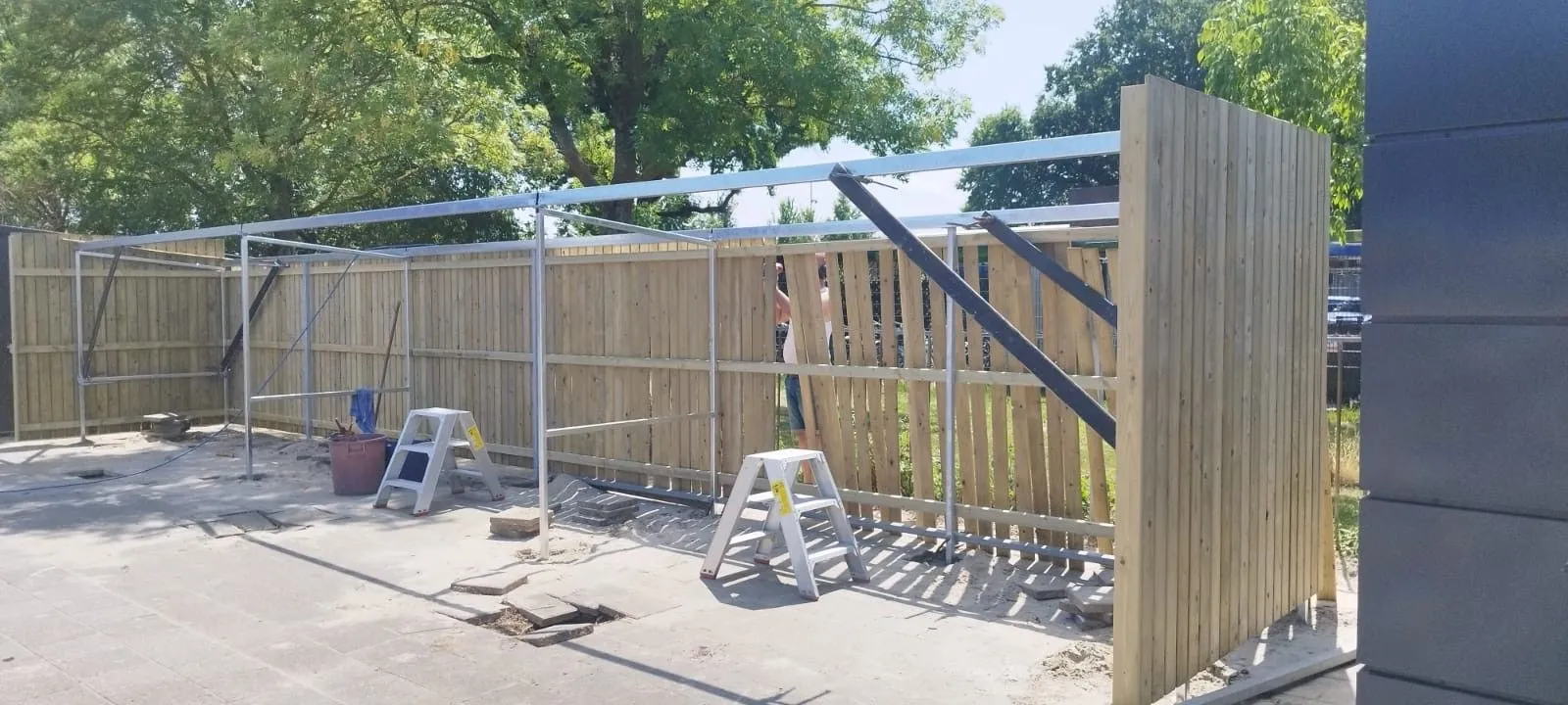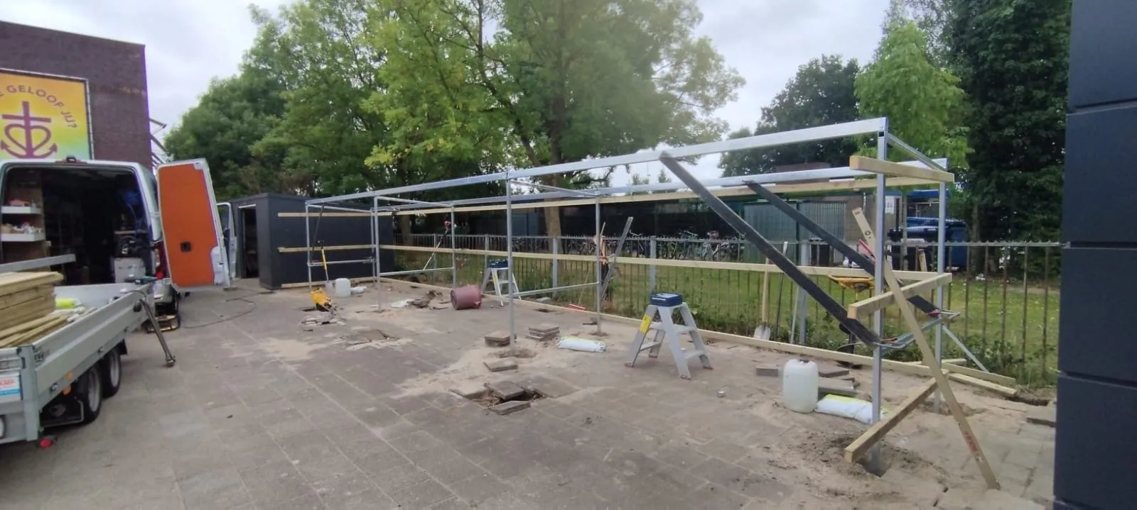 Bij het Calvijn College in Krabbendijke hebben wij een fietsoverkapping met open voorkant geplaatst.