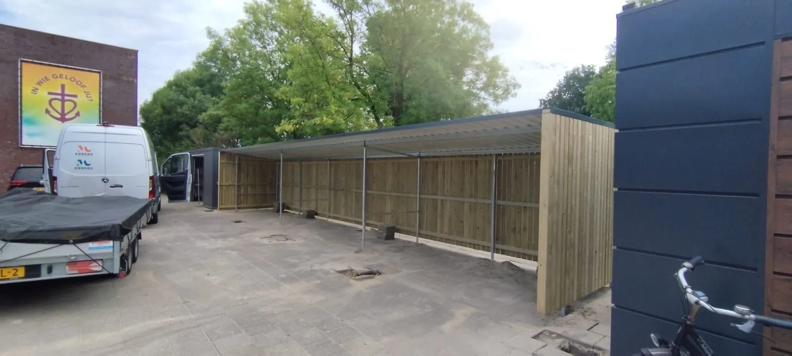 Fietsoverkapping en Afsluibare berging bij Enschedese Schoolvereniging (ESV)