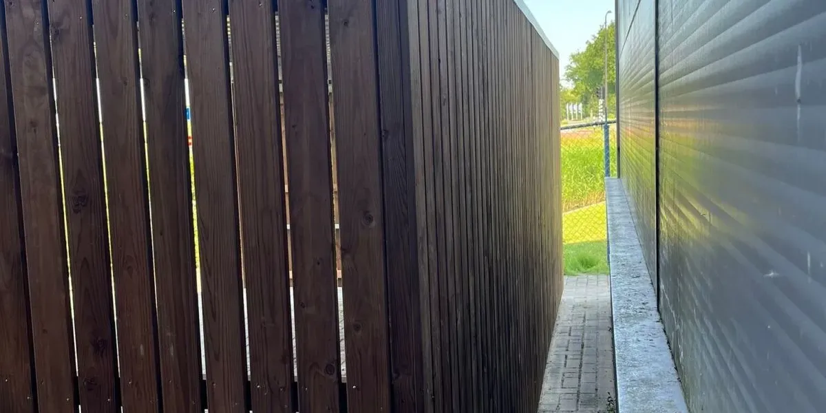 Bij Bray Controls Benelux B.V. in Heerhugowaard hebben we een fietsoverkapping mogen plaatsen, met een buitenmaat van 610 x 318 x 226 cm. Deze overkapping is uitgevoerd met Geimpregneerd vurehout in de kleur Tanlith Tanatone, met een plankafstand van 10 mm voor een strakke uitstraling.