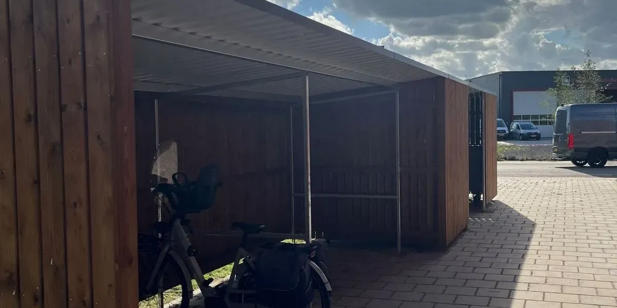 In opdracht van Hoveniersbedrijf 'Garden Design' hebben wij een fietsoverkapping met afsluitbare berging geplaatst in Duiven. Deze oplossing combineert open en afgesloten stalling in één constructie.