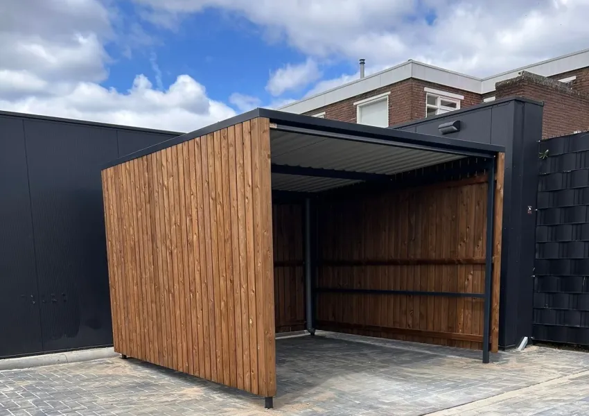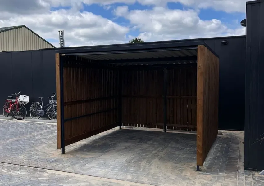 Bij RIBW Nijmegen en Rivierenland hebben wij een fietsoverkapping met open voorkant geplaatst.