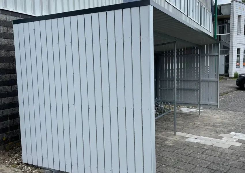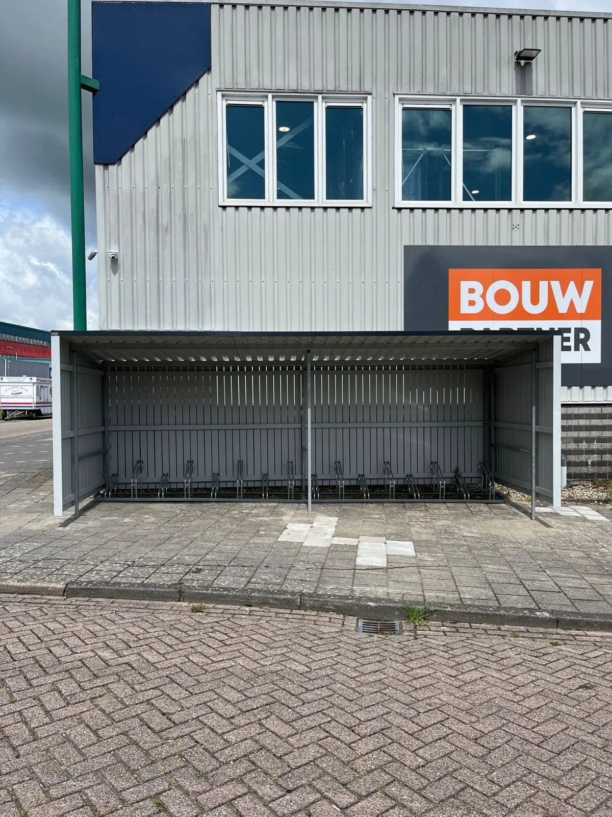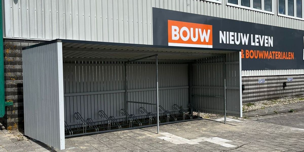 Voor Bouwmaterialenhandel Nieuw Leven B.V. in Volendam hebben wij een fietsenstalling met open voorkant geplaatst.