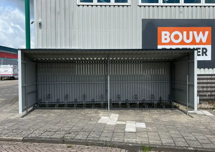 Deze stalling biedt ruimte aan meerdere fietsen en is ontworpen met oog voor functionaliteit én uitstraling.