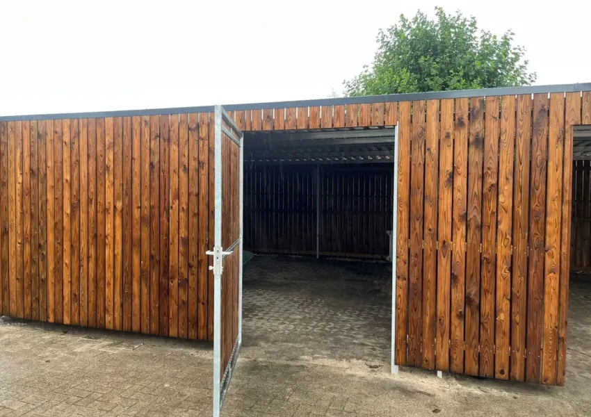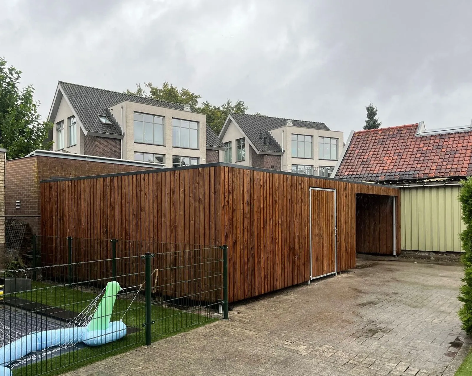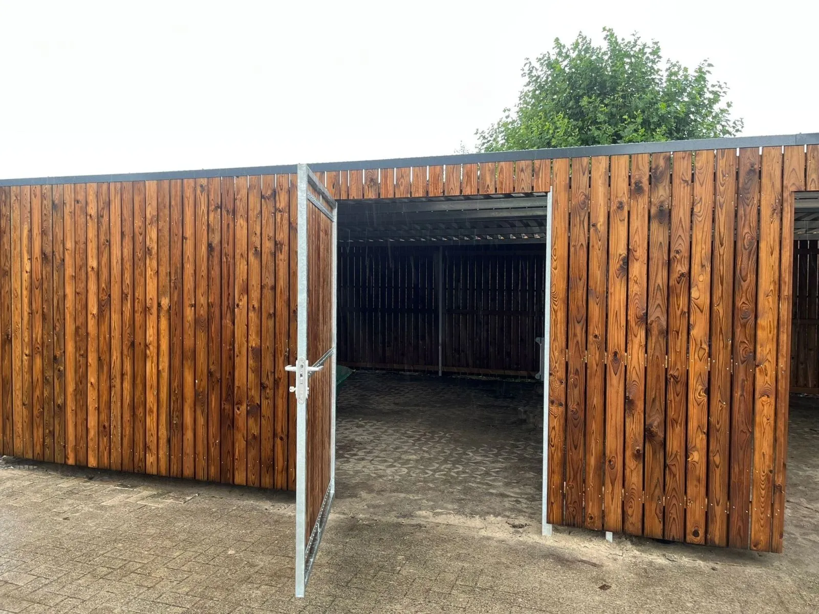 In Soest hebben wij een grote overkapping met afsluitbare berging geplaatst. Deze oplossing combineert open en afgesloten stalling in één constructie.